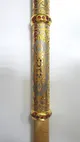 Корпус топора выполнен из дамасской стали, известной своей прочностью и исключительной красотой. Острое лезвие, надежно удерживаемое в рукояти, гарантирует безупречную функциональность. Рукоять изготовлена из благородного дерева, подчеркнута элементом декора из латуни, покрытой позолотой, и украшена натуральными гранатами, что придает изделию неповторимый вид.